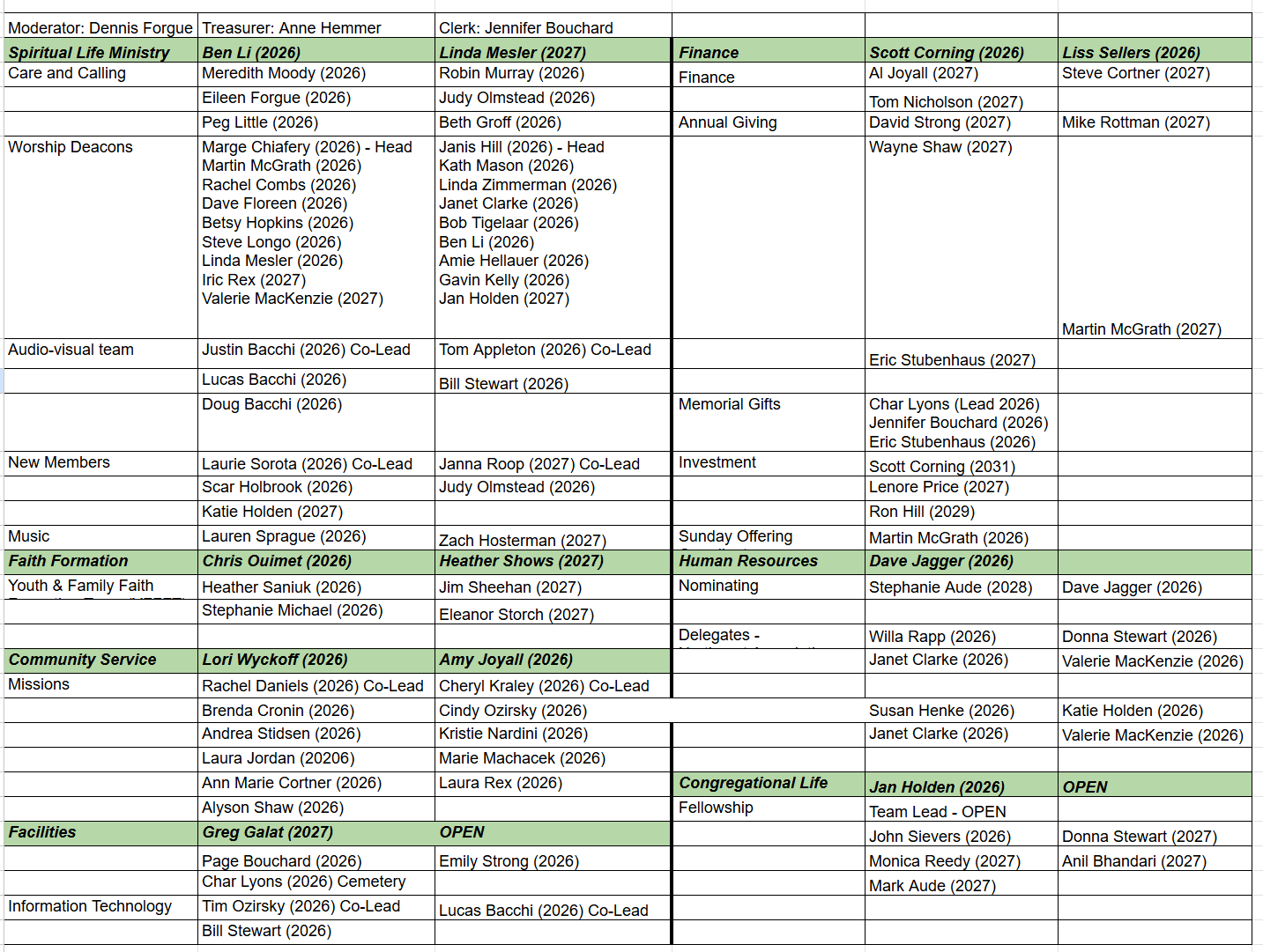 - Ministry & Teams Chart (visit our online directory in Realm for contact info)